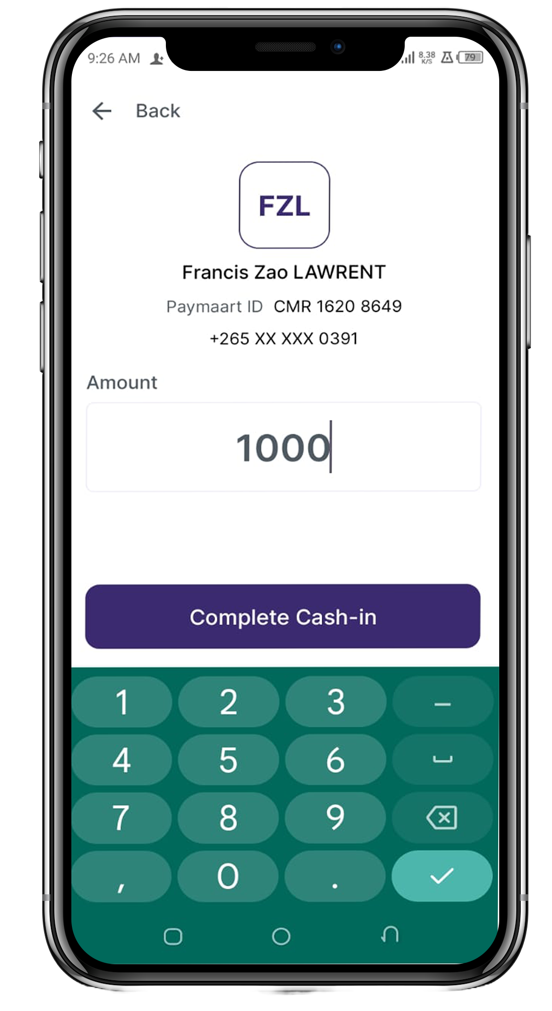 Input the amount you wish to cash-in and tap 'Complete Cash-in'.