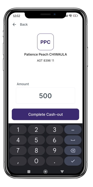 Input the amount you wish to cash-out and tap 'Complete Cash-out'.